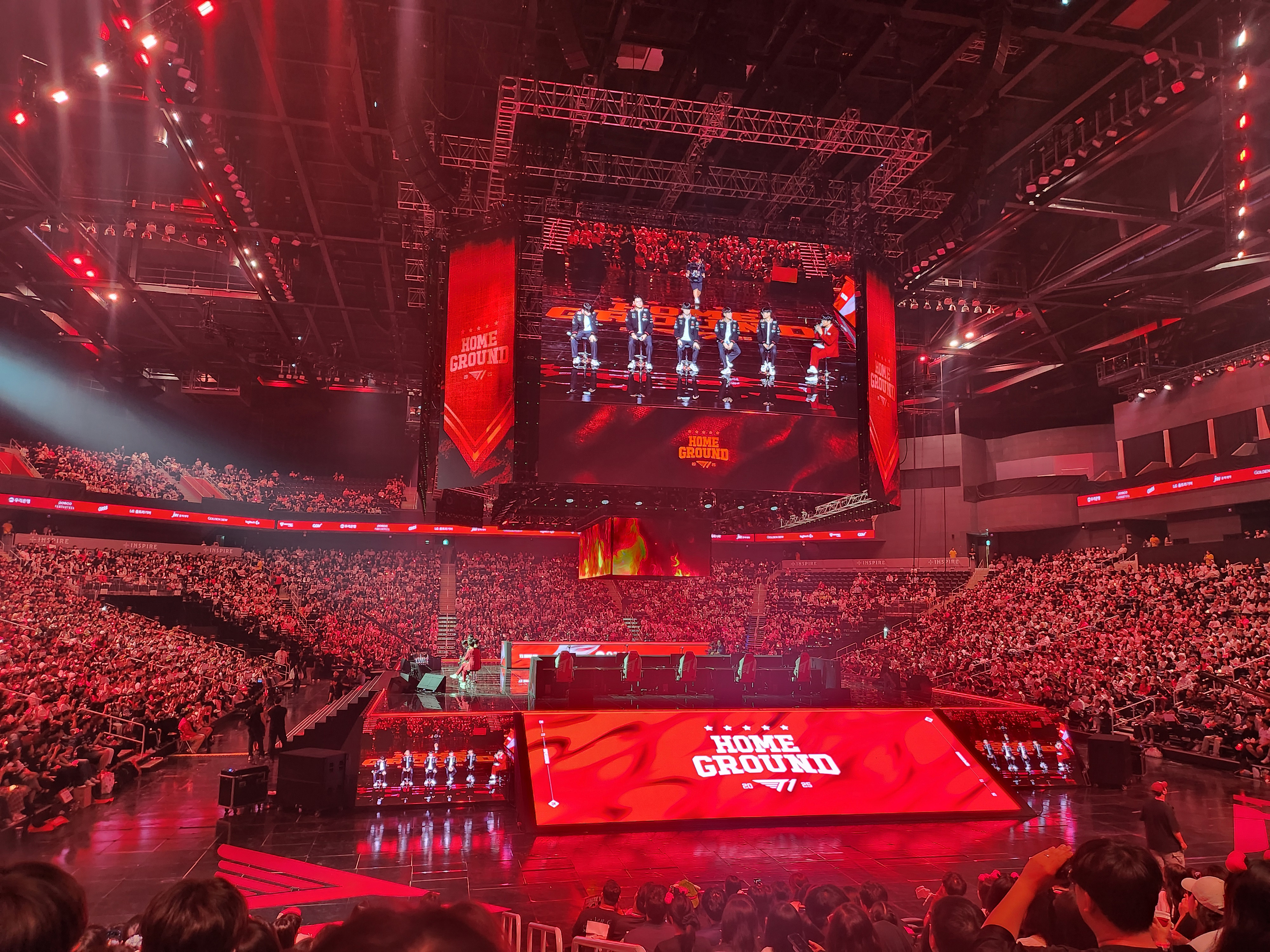 끼니를 거르고 이어진 강행군에도 불구하고 우리는 열띠게 호응했다. 경기는 물론 이어진 팬미팅에서도 선수들의 작은 말, 몸짓 하나에 꺄르르 넘어갔다. 선수들이 그냥 하품해도 나는 물개박수를 쳤을지 모른다. 특히 마지막 페이커 선수의 깜짝 재계약 소식에는 T1 팬이라는 자부심에 충만해져, 전투에서 승리한 전사처럼 괴성을 질렀더랬다.